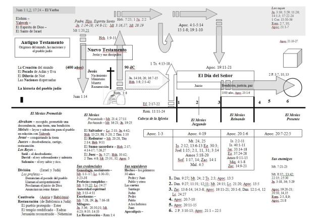 En una hoja, referencias y épocas relacionados con el mismo Hijo de Dios, El Verbo, El Mesías/ el Cristo, Jesús.